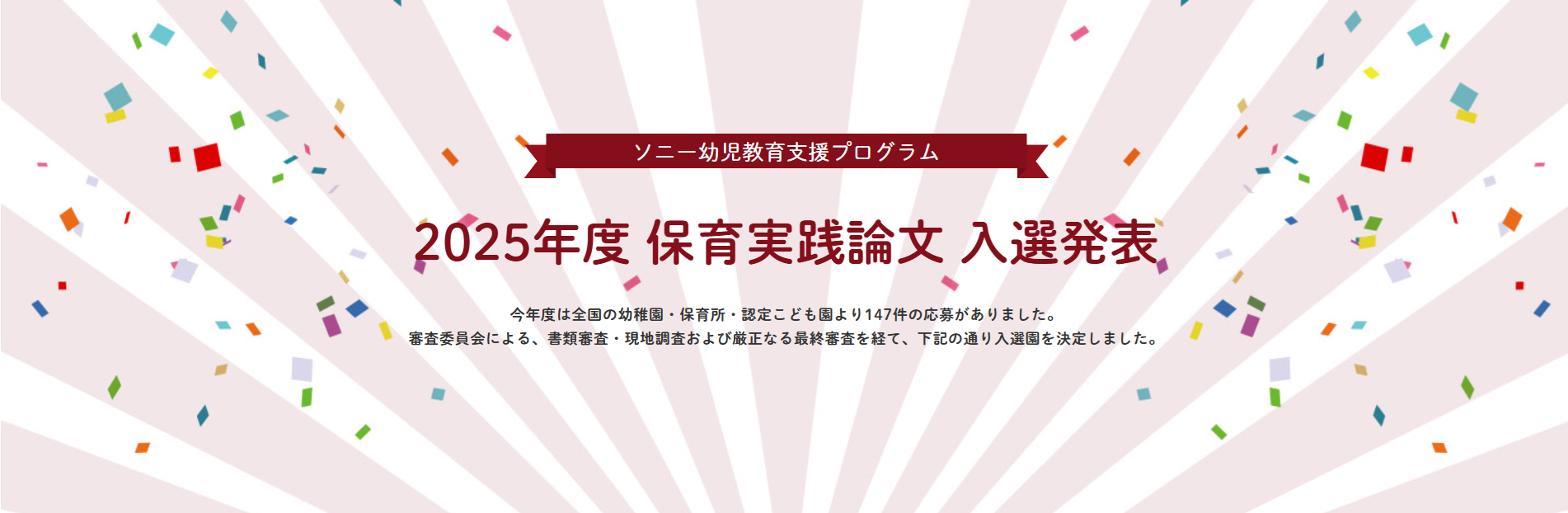 鶴ケ岡すまいる保育園の保育実践が2025年度ソニー幼児教育支援プログラム「科学をする心を育てる」において奨励園に選定されました。法人としては2022度の伊佐沼すまいる保育園の受賞より2度目の受賞となります。これからもすまいる委員会等を通じて、子どもたちがわくわくする質の高い保育を進めて参ります。