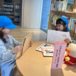 遠い図書館まで初めて行く3歳児グループの子もいる中、4,5歳児グループのお友だちと一緒に手を繋いで行くことが出来ました🎶