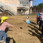 園庭で遊んでいる際に「ひろいところでやりたーい」と言っていたお友だち。念願の広い芝生で行うことができ、のびのびと動き回る姿が見られました。