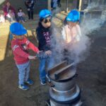 昨日水につけて置いたもち米。厨房の先生からいつものお米をもらって比較してみると… 「なんかいろがちがう!」「おおきさもちがう!」と発見の連続。火起こしは手慣れたもので、手首を上手く使ってサッとマッチに火をつけていました。釜に興味津々の3歳児のお友だちは薪が入っている所を覗き込む姿もありましたよ。徐々に時間が経つと、「いいにおいしてきた〜!」「おこめのにおいがする!」という声が。炊けたもち米の試食をしてみると、「なんかもちもちする〜!」といつもの白米との違いに気付いたお友だちもいました🌟