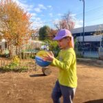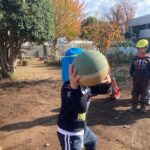 はじめはルールが分からず、ボールが当たってもキョトンとしていた3歳児のお友だち。