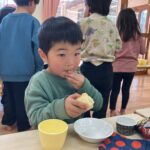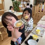 「じぶんでつくったのおいしーい!」とお友だちと共感しながら笑顔で食べているのがとても印象的でした♬