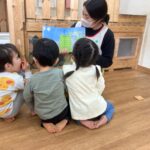 手が出て来たときには、「あ!手!」と見つけていました。そして最後はお母さんまで…見ている子は目が点になっていました。