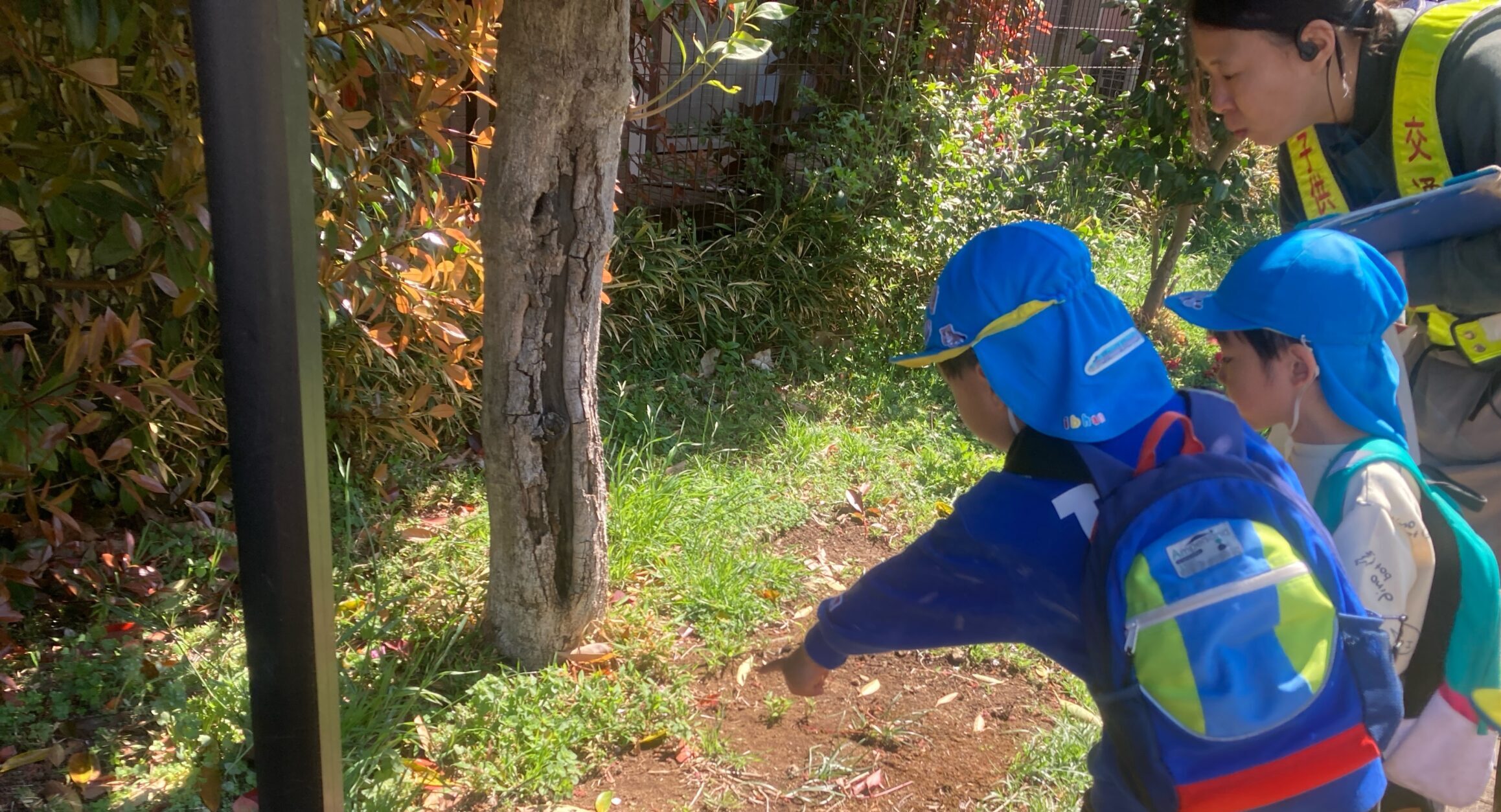 昨日の園庭で、ある子どもが…「池の水が少ないから虫が来ないんじゃない?」と一言。 👩🏻🏫「ホースで水を入れてみる?」👦🏻「うん!」…