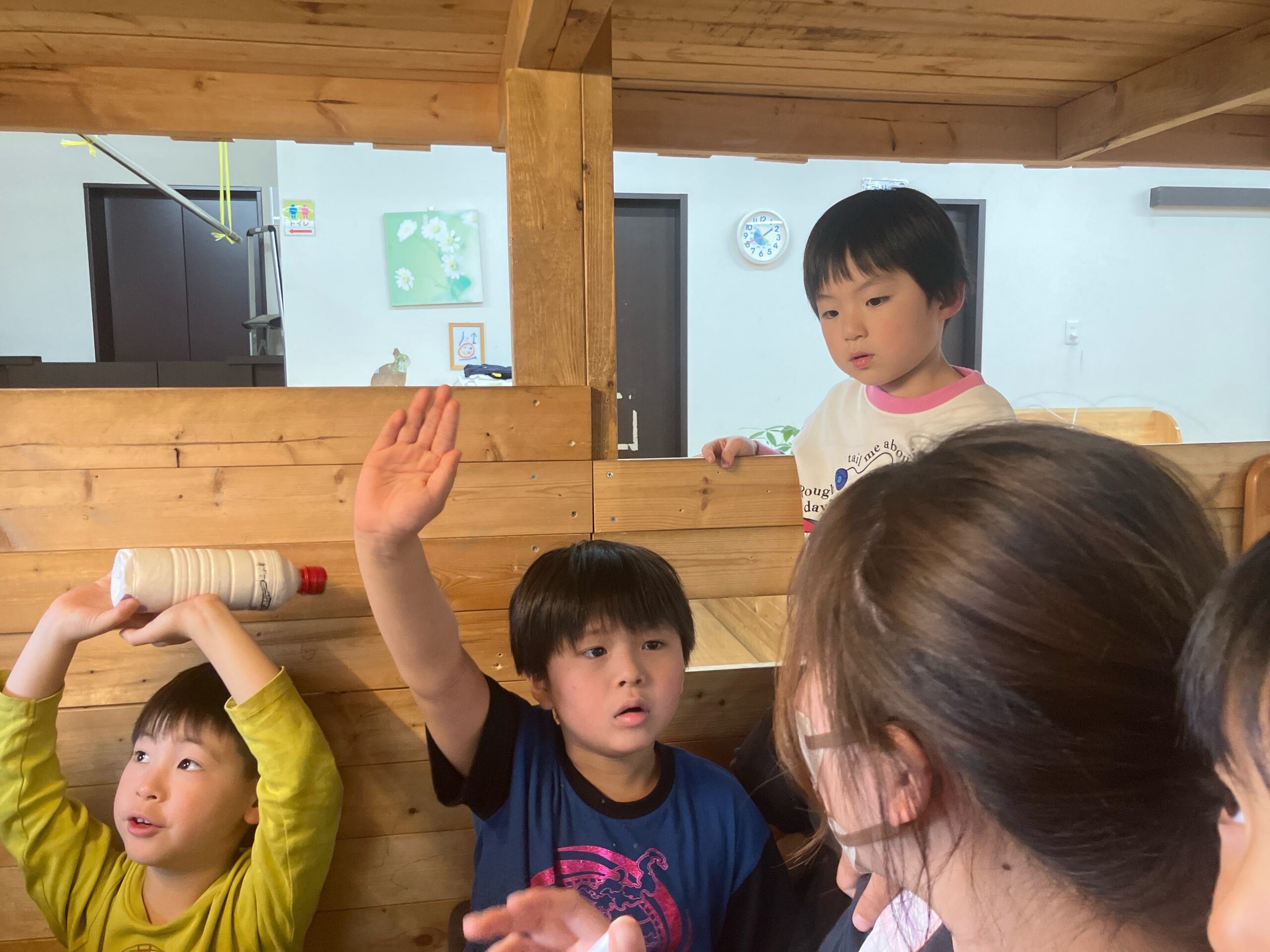 先日、宙グループ(5歳児)のお友だちでお話し合い、『宙活』を行いました。 議題は、けやの森の遠足について。けやの森でなにをしたいのか…