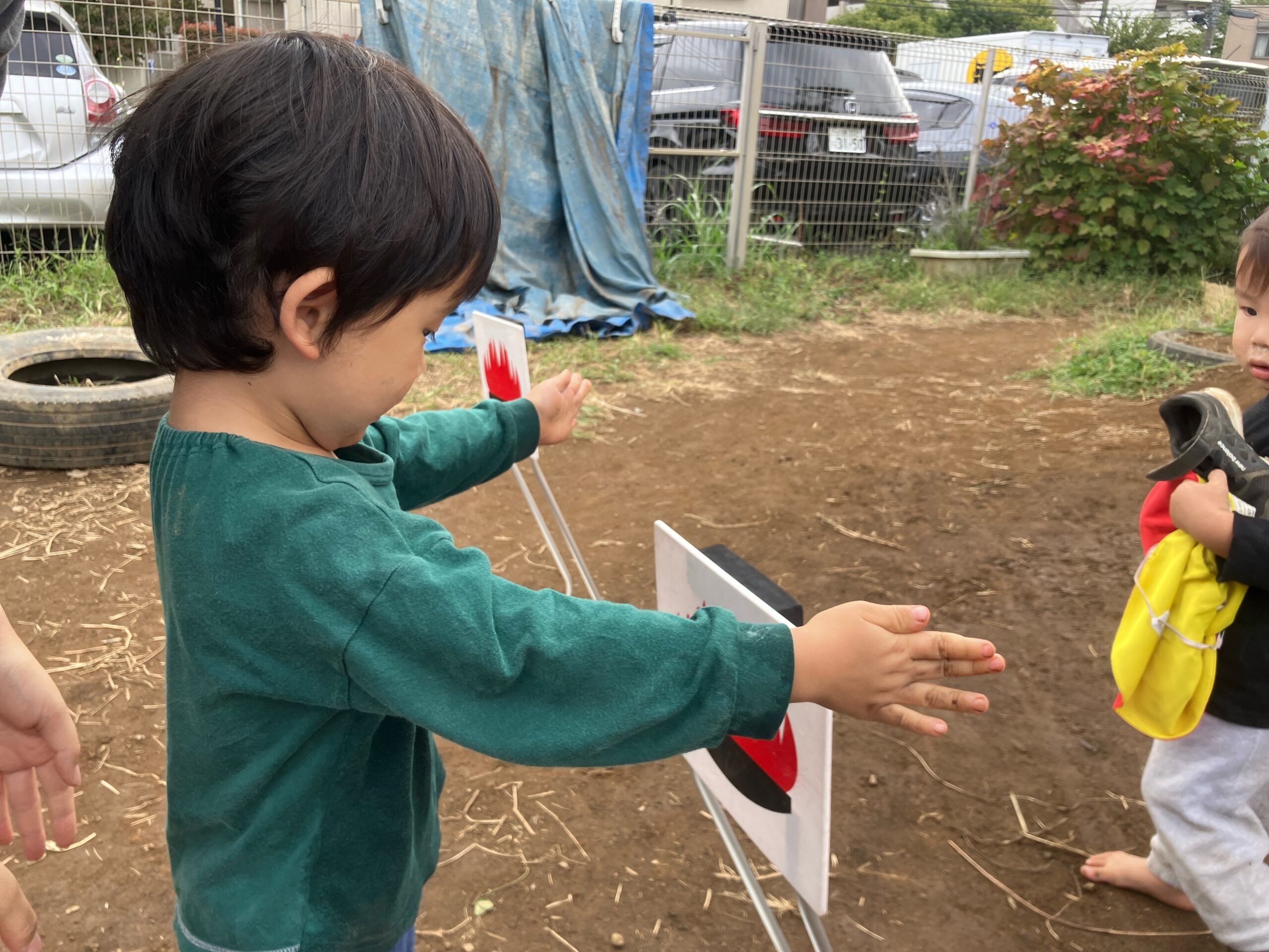 お外が涼しくなり、園庭での遊びも活発になってきています! 砂場では、異年齢で一緒におままごとをする姿が見られました。 子どもA:「ア…