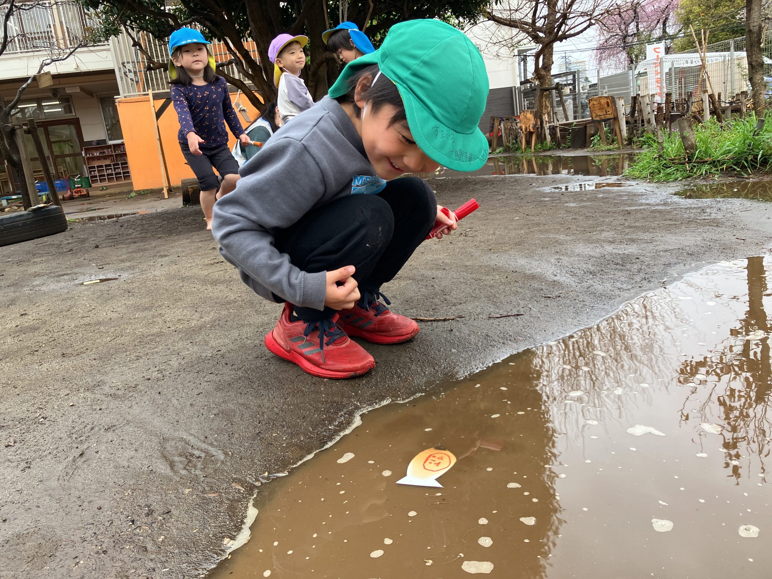 雨が降って、園庭にできたたくさんの水溜まり。 靴が濡れないように、つま先でペンギンのように歩く子や、 👧🏻「このずぼんじゃだめだ!」…